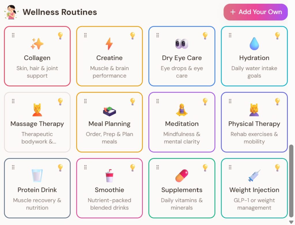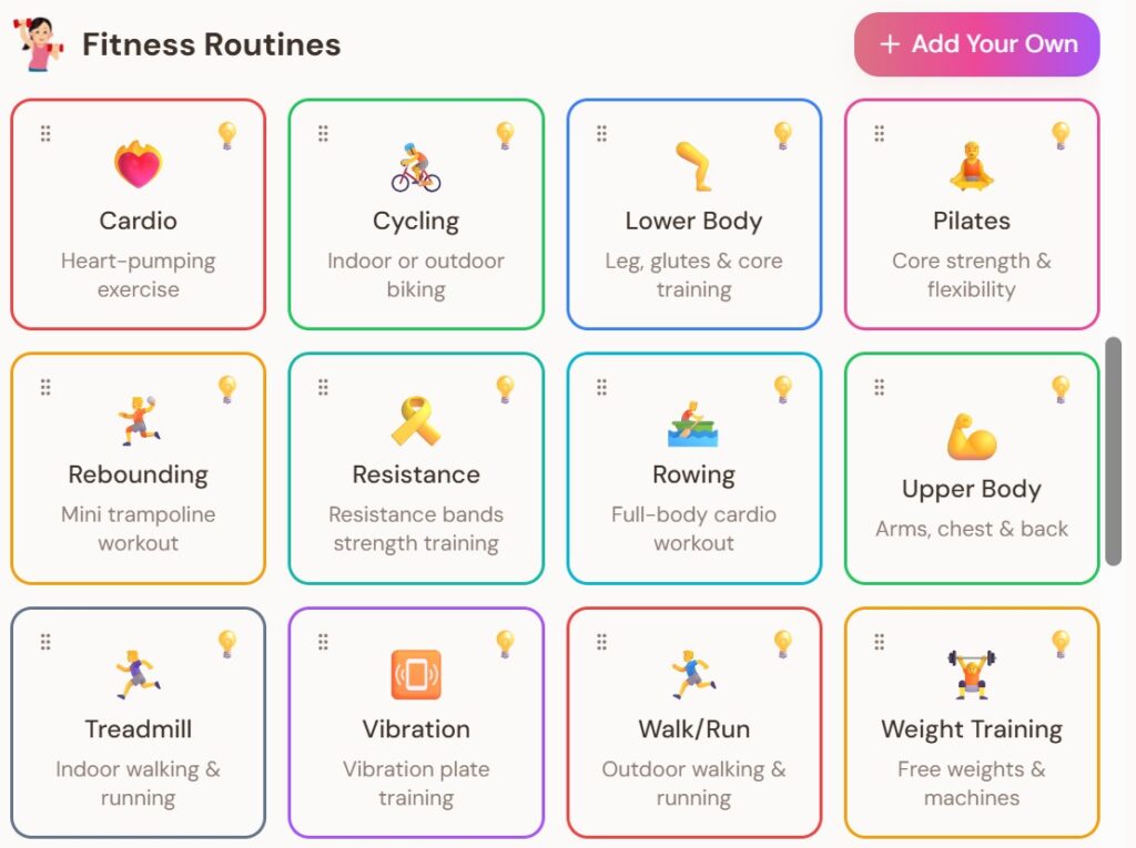 - Create your Own Routines – Add any routine easily so you can track everything